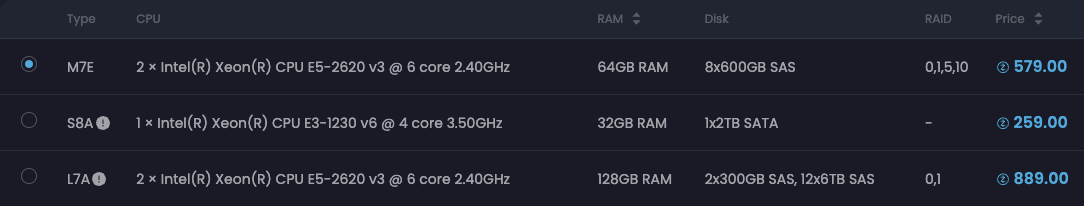After selecting your instance specification, check the Disk and RAID columns.