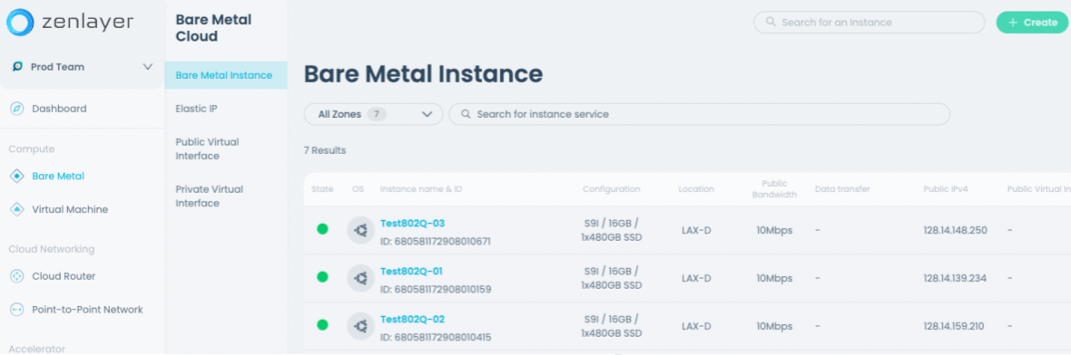 * <mark style="color:blue;">Zenlayer 裸机云不提供对实例的 IPMI 直接访问，因此您无法使用 IPMI 接口调用来管理实例。</mark>