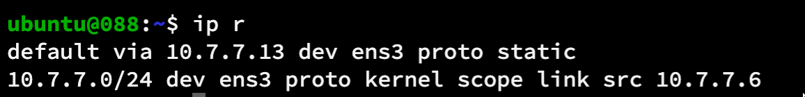 <mark style="color:blue;">`ip r`</mark> <mark style="color:blue;">命令显示默认路由已设置为 MAAS 服务器，后者充当公网 NAT 网关：</mark>