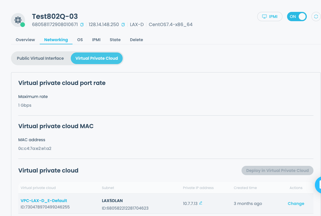 您可以在实例详情页面获取全球 VPC 的 MAC 地址，这可能在未来的 DHCP IP 与 MAC 绑定设置中使用。
