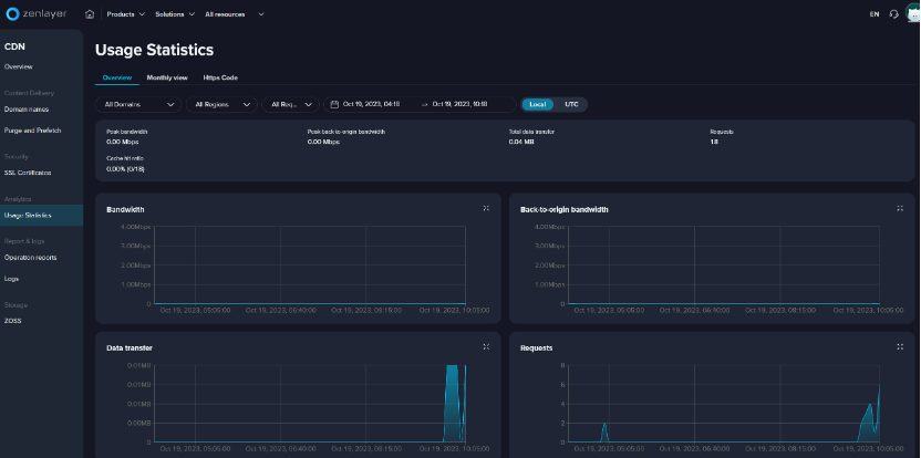 You can search reports related to the resource usage by domain name, region and/or request type.