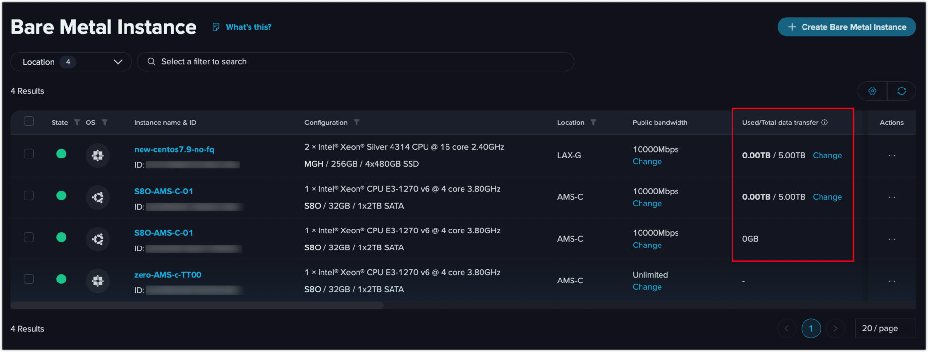 * <mark style="color:blue;">All your instances in one bandwidth cluster will be billed together with no bandwidth commitment.</mark>